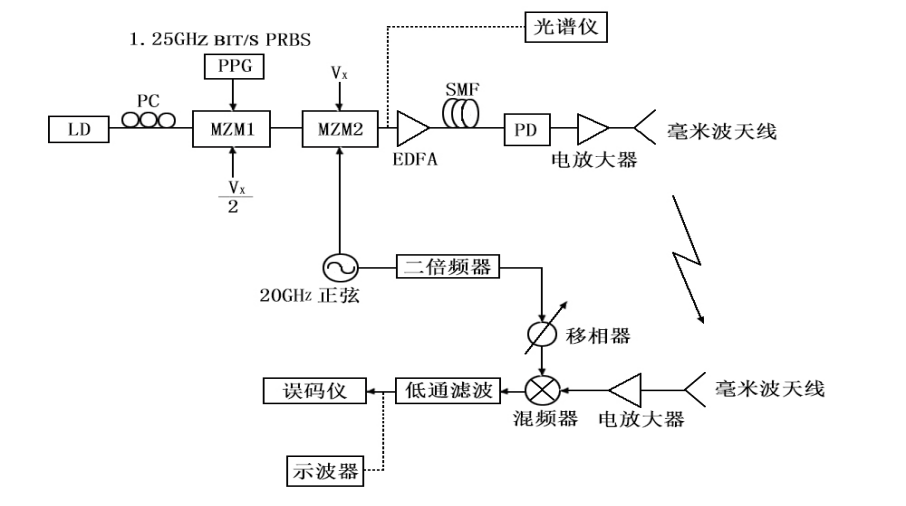 毫米波ROF系统光纤与无线传输系统