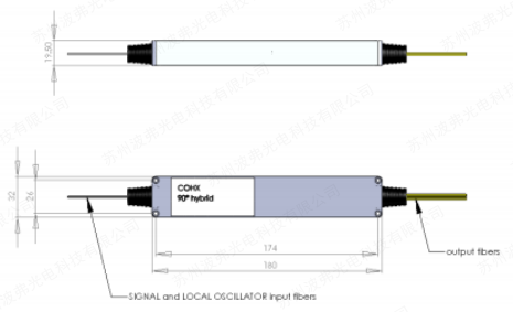 对于双偏振光混频器(COH22、COH28和COH28-X),本振光信号为保偏光纤(PMF),信号光为单模光纤(SMF)。 输出为单模光纤(SMF)。