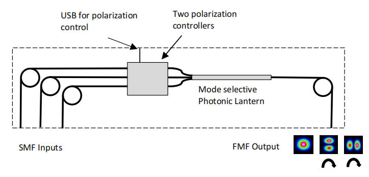 由光子提灯和偏振控制器组成的模式复用器。