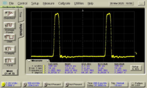 100ps脉宽 @时钟频率. 1GHz,输出电平 5.1Vpp |