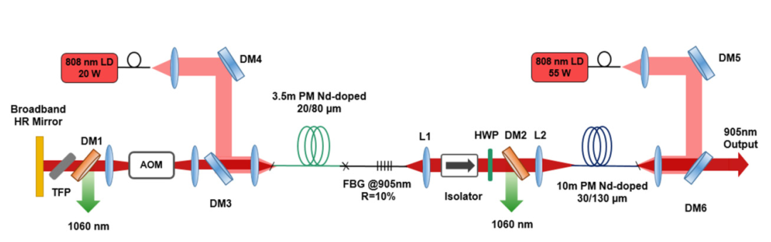 Exail钕铝硅酸盐双包层光纤已经开发出来,通过精确控制的基质成分来最大限度地提高光纤效率。与标准Nd光纤相比,通过仔细的光纤设计优化,减少了1.06µm的发射。